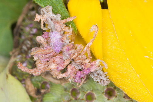 Camouflaged Looper caterpillar on Monarda - Photo courtesy of Terry Miesle