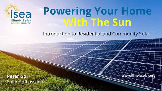 Join local Deer Park resident and Illinois Solar Education Association (ISEA) Solar Ambassador Peter Gorr as he presents “Powering Your Home with the Sun”.