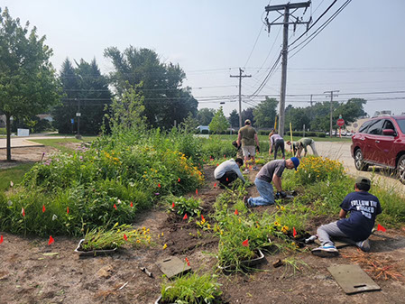 Back in 2015 the late Alderman Larry Rosenthal, had a dream of creating a nature refuse where first responders from the Police and Fire Departments, could go to decompress from the sometimes tragic and life changing events they encounter every day of service. It was a noble idea that sat idle until Superintendent of the Public Works Mark Roscoe revived the idea with two weeks to go in the grant application process for a ComEd Green Regions grant. With the PHNRC spearheading the proposal, the project was awarded a grant from ComEd with matching funding from the Dr. Chris and Julie Wood, the PHNRC Commissioners Fund and the City of Prospect Heights. All the plants used in this restoration were produced in the PHNRC greenhouse program.