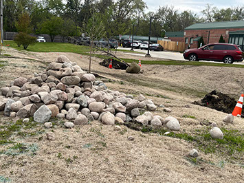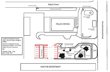 14 East Camp McDonald Road, in-between the Prospect Heights Police and Fire Departments. The project wraps the Police station and continues down Maple Avenue.
