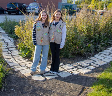 Cadets from Girl Scout Troop 41508 out of Science and Arts Academy in Des Plaines created the stones and designed the path to the Fire Department