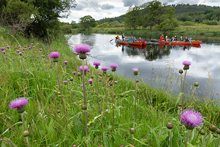 Melancholy thistle with group of kayakers on River Spey, Insh Marshes, Cairngorms - © Mark Hamblin