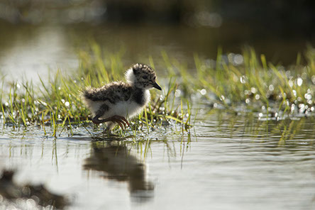 Lapwing Vanellus vanellus, newly hatched chick in wetland habitat, Caithness - © Mark Hamblin